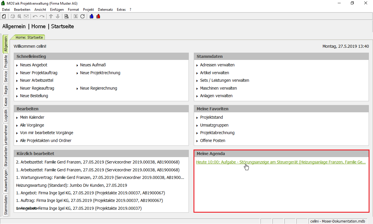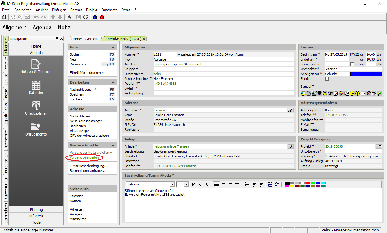 MOS'aik-Kalenders wird dem zugeteilten Mitarbeiter der Termin