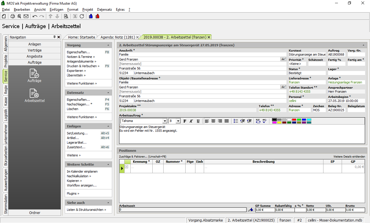 Erweiterungsmodul Mobiler Service zur Verfügung. Eine vollständige