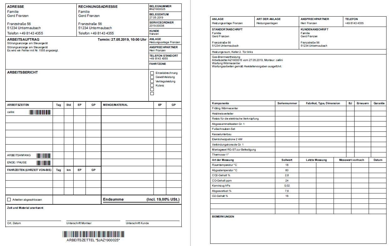 Der gedruckte Arbeitszettel wird mit dem enthaltenen Arbeitsauftrag und
