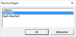 Nach Plan Feld Termin= Termin + IntervallNach Abschluss Feld Termin= Abschluß + Intervall<Keine> Einmalige Wartung -