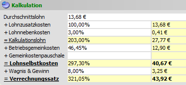 Der Faktor bezieht sich auf die Kostenermittlung in der Nachkalkulation. Die Lohnselbstkosten werden im Beispiel um den Faktor 1,5 (also 50%) erhöht.