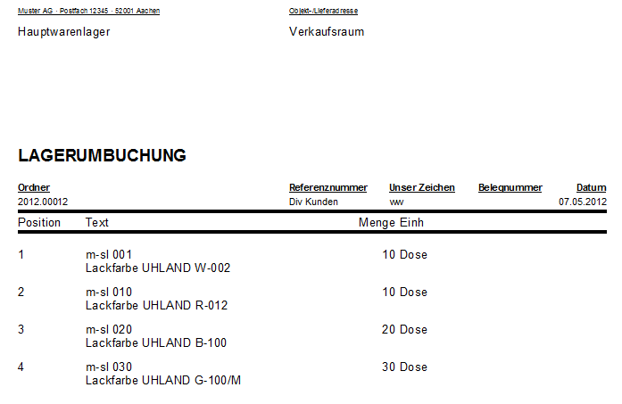Abbildung 3.33. Lieferschein Lagerumbuchung