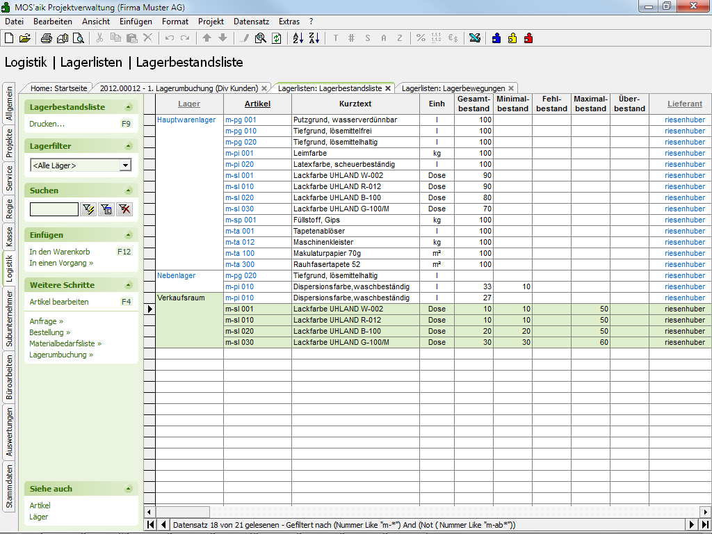 Max-Bestände bietet die Lagerbestandliste. Nach der