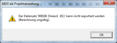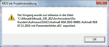 Im Fehlerfall wird der Export abgebrochen und ist unvollständig. Korrigieren Sie den Fehler und exportieren das REB Aufmaß erneut.