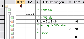 Texte und Rechenzeilen müssen unterhalb einer Position eingefügt werden, z.B.: