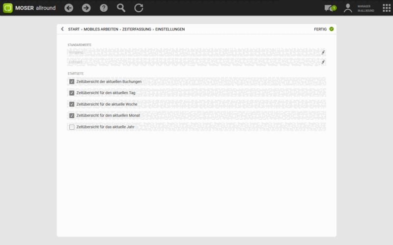 Weiterhin können fest Vorgabewerte für folgende Einstellungen hinterlegt werden: