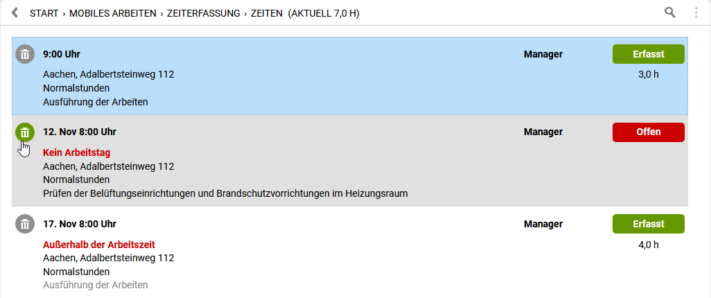 Zeiterfassungen löschen: