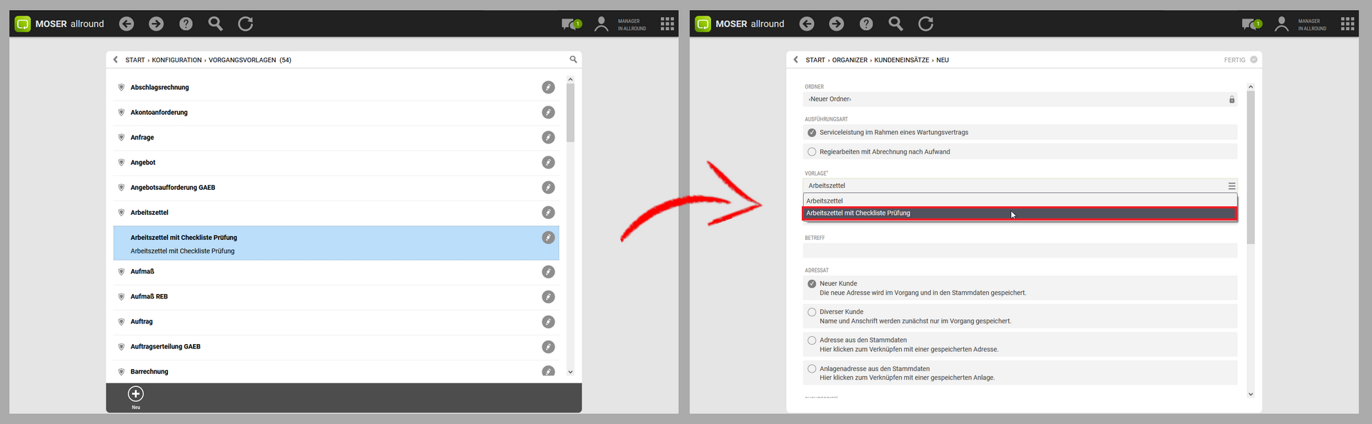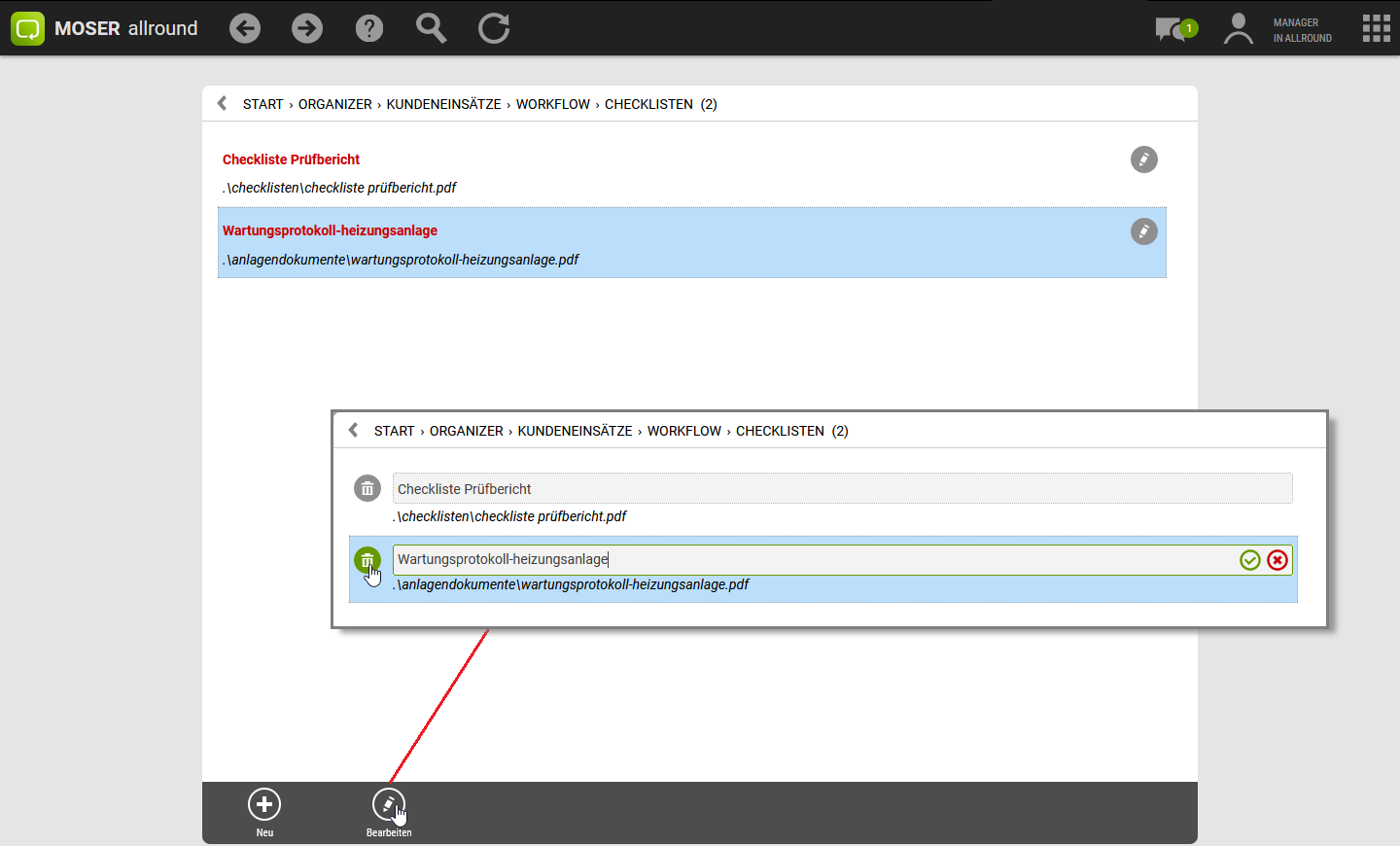 Die Erstellung von Checklistenvorlagen wird im Rahmen des Moser FAQ für MOS'aik beschrieben.