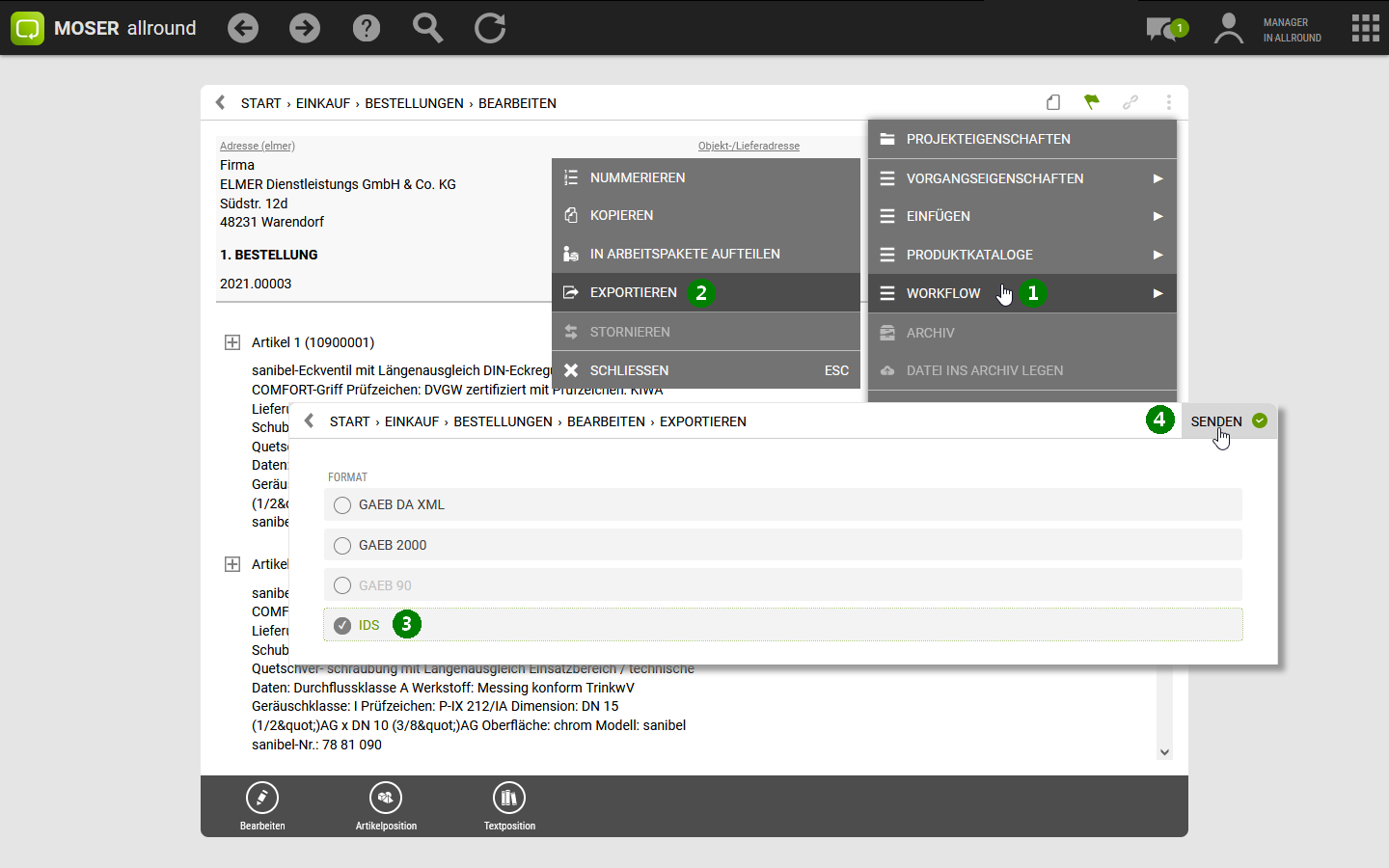 Lieferantenseitige Vorgänge, wie Bestellungen und Preisanfragen, können direkt an ein eingerichtetes IDS-Lieferantenportal des entsprechenden Lieferanten übermittelt werden: