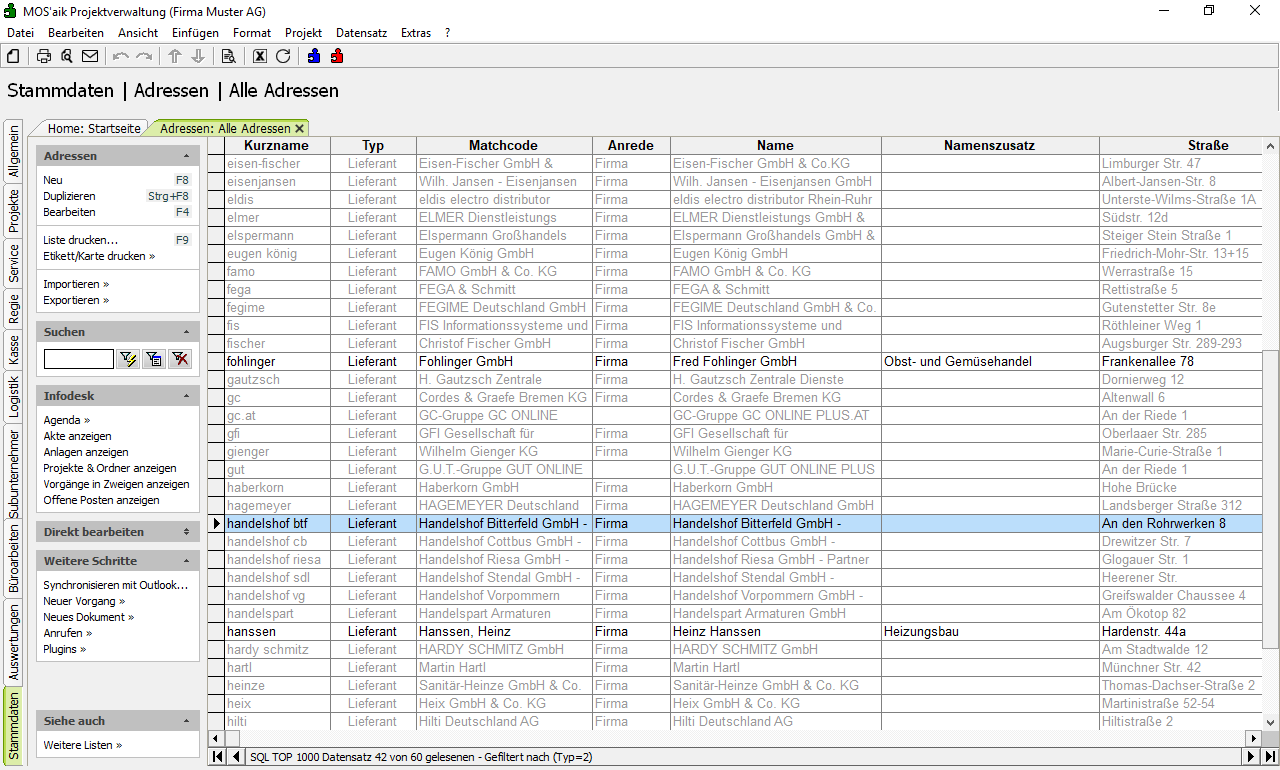 Öffnen Sie dazu die entsprechenden Lieferantenstammdaten über das Arbeitsblatt Alle Adressen.