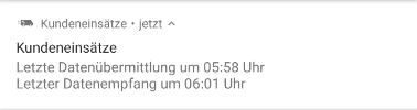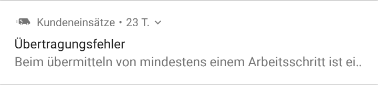 Sollte es einmal zu einem Übermittlungsfehler kommen, wird dieser in der Benachrichtigungsleiste des Mobilgerätes angezeigt: