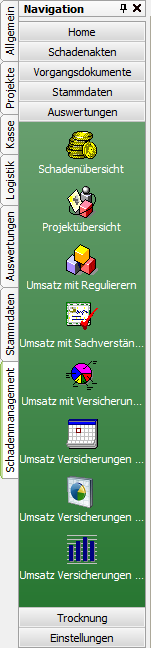 Zu Schadenakten und deren Vorgängen werden unter Schadenmanagement / Auswertungen einige Auswertungen bereitgestellt.