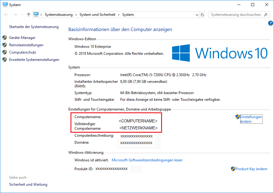 Drücken Sie die Windows®-Taste zusammen mit der Pause-Taste Win+Pause: Sie finden den Namen Ihres Computers unter Einstellungen für Computernamen, .... |